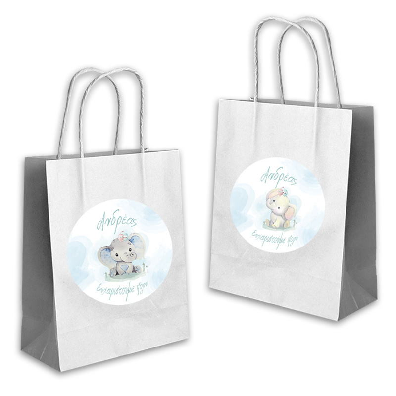 Ποιοτική τσάντα δώρου Ελεφαντάκι 22cmx18cmx8cm με το όνομα του παιδιού. Ιδανική για τα δώρα σας!(τιμή τεμαχίου).