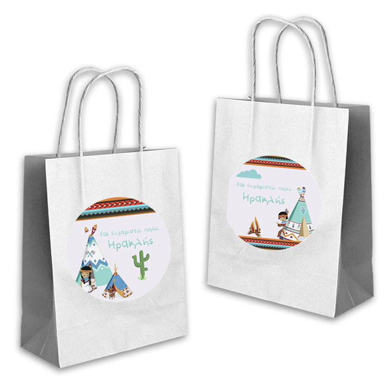 Ποιοτική τσάντα δώρου Ινδιάνος 22cmx18cmx8cm με το όνομα του παιδιού. Ιδανική για τα δώρα σας!(τιμή τεμαχίου).