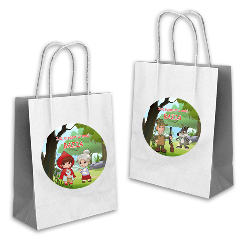 Ποιοτική τσάντα δώρου Κοκκινοσκουφίτσα 22cmx18cmx8cm με το όνομα του παιδιού. Ιδανική για τα δώρα σας!(τιμή τεμαχίου).