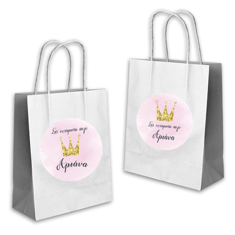 Ποιοτική τσάντα δώρου Κορώνα 22cmx18cmx8cm με το όνομα του παιδιού. Ιδανική για τα δώρα σας!(τιμή τεμαχίου).
