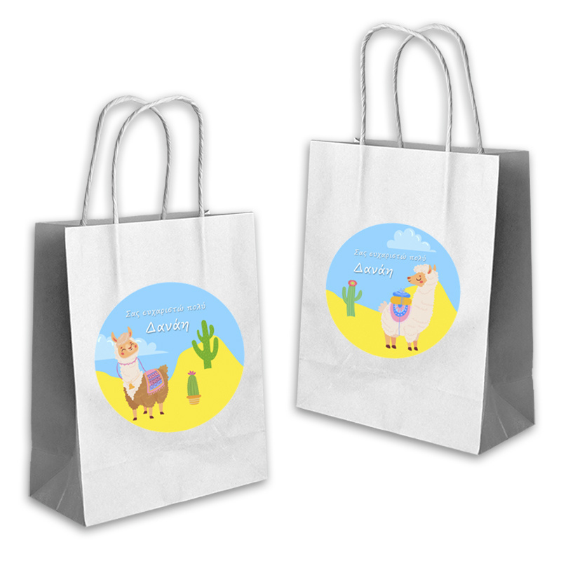 Ποιοτική τσάντα δώρου Λάμα 22cmx18cmx8cm με το όνομα του παιδιού. Ιδανική για τα δώρα σας!(τιμή τεμαχίου).
