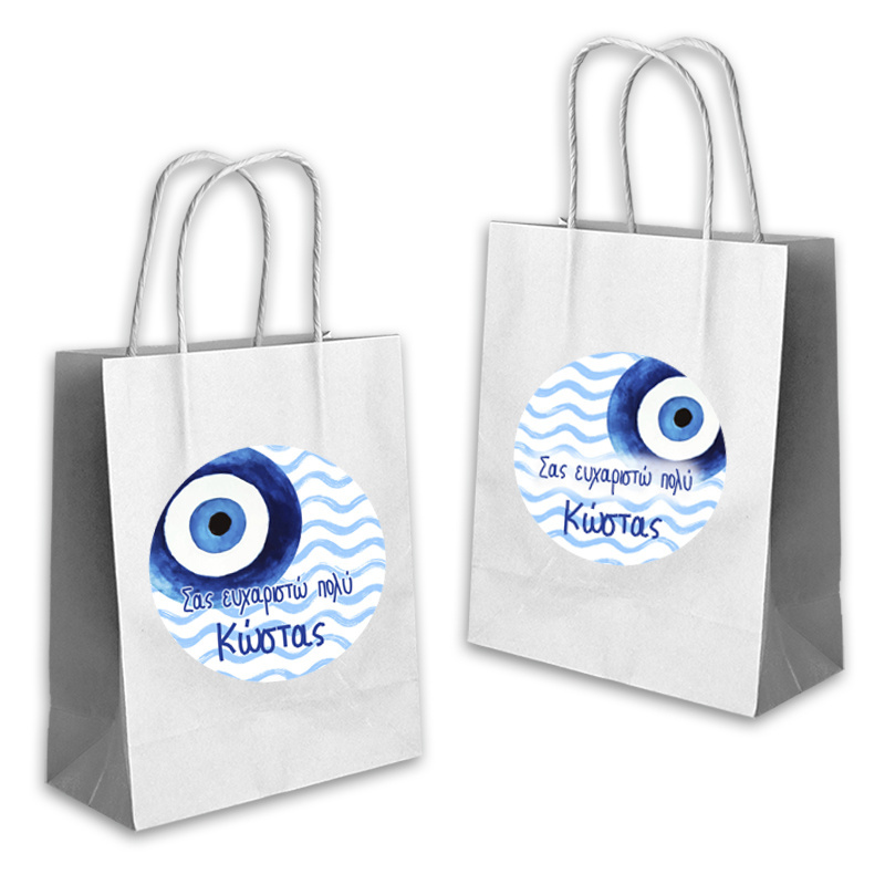 Ποιοτική τσάντα δώρου Μάτι Αγόρι 22cmx18cmx8cm με το όνομα του παιδιού. Ιδανική για τα δώρα σας!(τιμή τεμαχίου).
