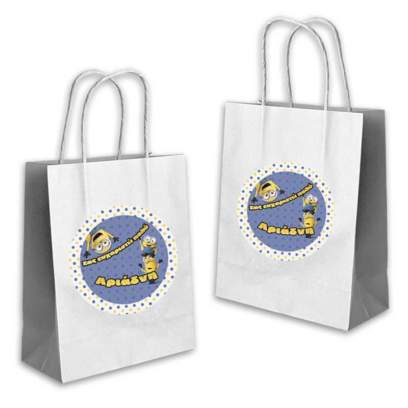 Ποιοτική τσάντα δώρου Minions 22cmx18cmx8cm με το όνομα του παιδιού. Ιδανική για τα δώρα σας!(τιμή τεμαχίου).