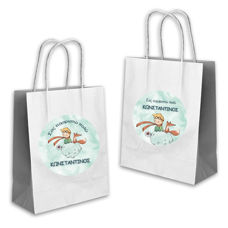 Ποιοτική τσάντα δώρου Ο Μικρός Πρίγκιπας 22cmx18cmx8cm με το όνομα του παιδιού. Ιδανική για τα δώρα σας!(τιμή τεμαχίου).