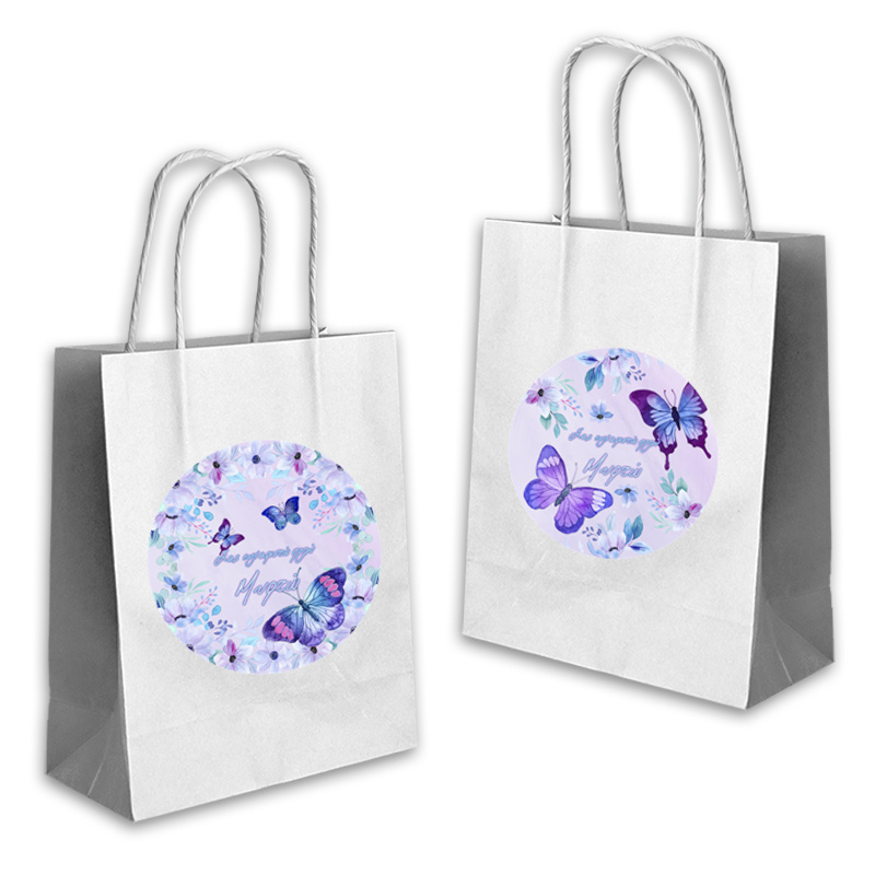 Ποιοτική τσάντα δώρου Πεταλούδες 22cmx18cmx8cm με το όνομα του παιδιού. Ιδανική για τα δώρα σας!(τιμή τεμαχίου).