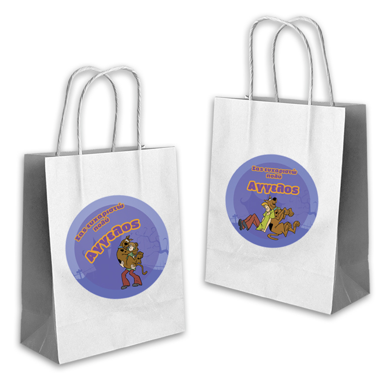 Ποιοτική τσάντα δώρου Scooby-Doo 22cmx18cmx8cm με το όνομα του παιδιού. Ιδανική για τα δώρα σας!(τιμή τεμαχίου).