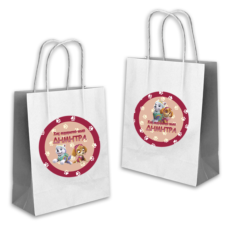 Ποιοτική τσάντα δώρου Paw Patrol 22cmx18cmx8cm με το όνομα του παιδιού. Ιδανική για τα δώρα σας!(τιμή τεμαχίου).
