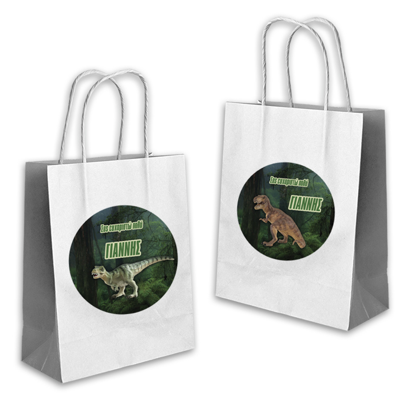 Ποιοτική τσάντα δώρου T-Rex 22cmx18cmx8cm με το όνομα του παιδιού. Ιδανική για τα δώρα σας!(τιμή τεμαχίου).