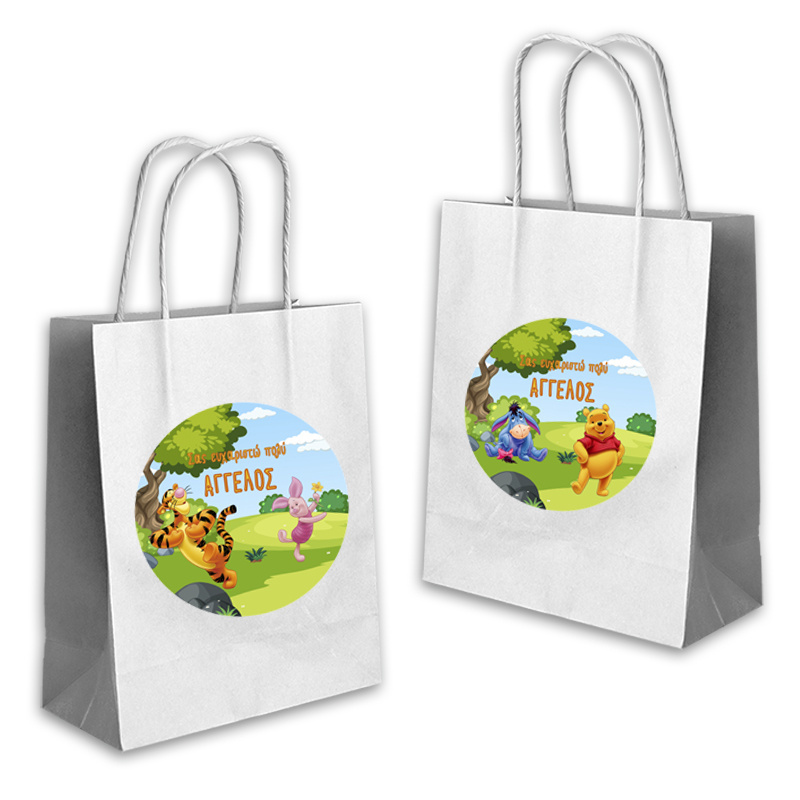 Ποιοτική τσάντα δώρου Winnie 22cmx18cmx8cm με το όνομα του παιδιού. Ιδανική για τα δώρα σας!(τιμή τεμαχίου).