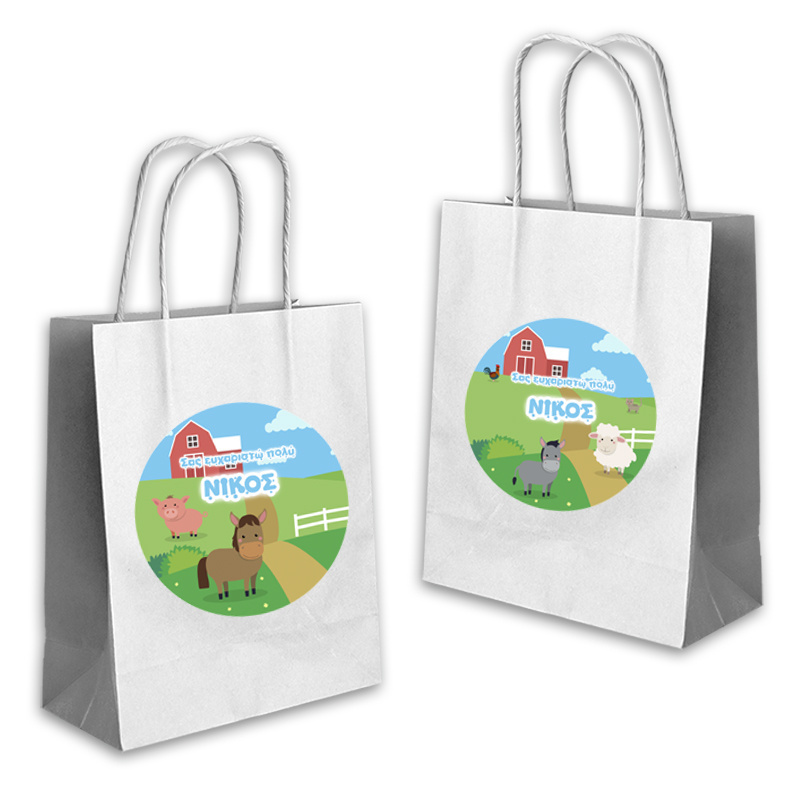 Ποιοτική τσάντα δώρου Ζωάκια Φάρμας 22cmx18cmx8cm με το όνομα του παιδιού. Ιδανική για τα δώρα σας!(τιμή τεμαχίου).