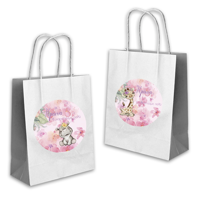 Ποιοτική τσάντα δώρου Ζωάκια ζούγκλας Κορίτσι 22cmx18cmx8cm με το όνομα του παιδιού. Ιδανική για τα δώρα σας!(τιμή τεμαχίου).