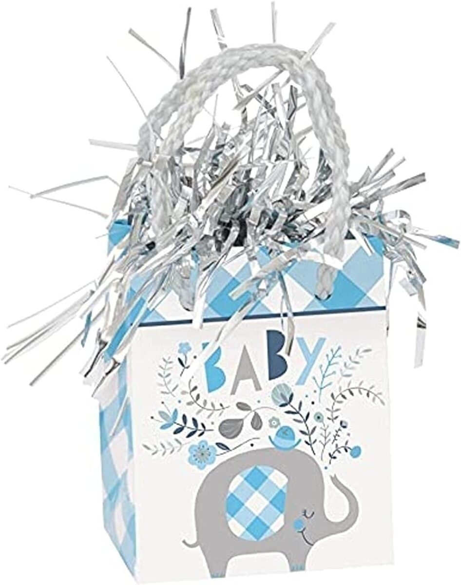 Κάθε πακέτο περιέχει 1 Βαρίδι μικρή τσάντα μπλε με ελεφαντάκι και ασημένιες κορδελίτσες. Ειναι αρκετά βαρύ για να κρατήσει μπουκέτο μπαλόνια στο Shower πάρτι σας.
