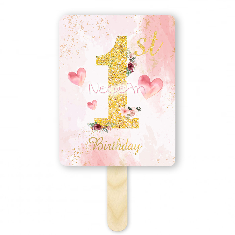 Εντυπωσιακή ορθογώνια χάρτινη βεντάλια με όνομα 1st Birthday girl, ένα έξυπνο αναμνηστικό δωράκι για τους καλεσμένους σας.