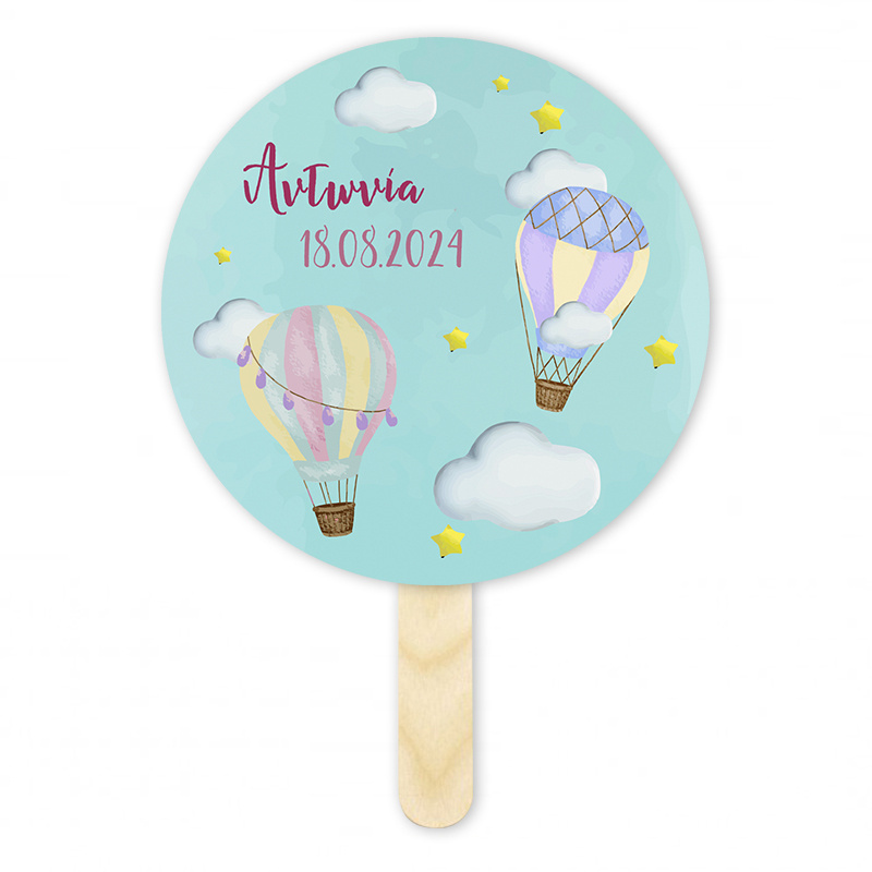 Εντυπωσιακή χάρτινη βεντάλια με όνομα Αερόστατο, ένα έξυπνο αναμνηστικό δωράκι για τους καλεσμένους σας.