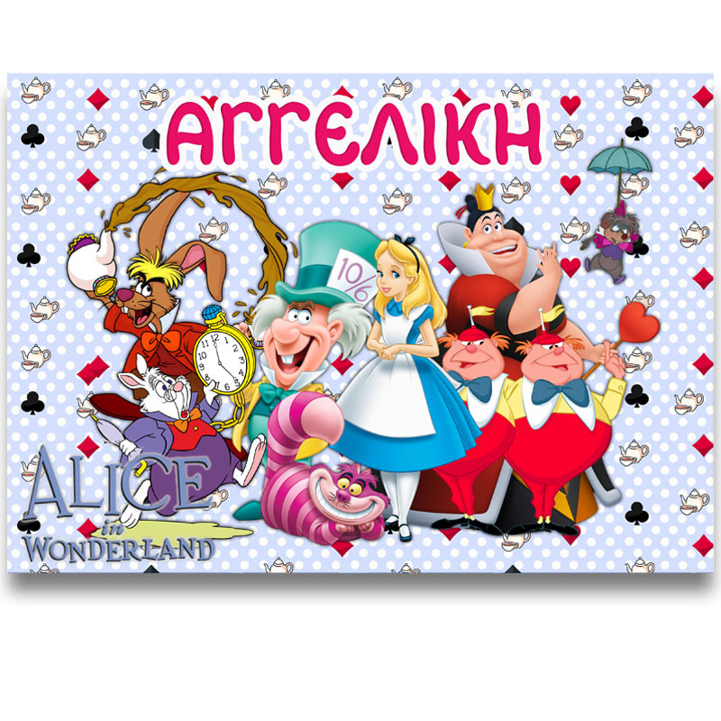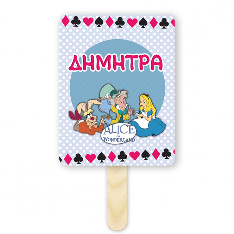 Εντυπωσιακή ορθογώνια χάρτινη βεντάλια με όνομα Αλίκη στη Χώρα των Θαυμάτων, ένα έξυπνο αναμνηστικό δωράκι για τους καλεσμένους σας.
