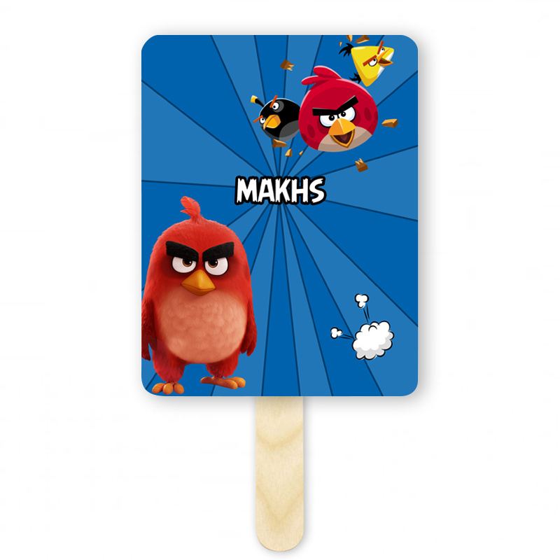 Εντυπωσιακή ορθογώνια χάρτινη βεντάλια με όνομα Angry Birds, ένα έξυπνο αναμνηστικό δωράκι για τους καλεσμένους σας.