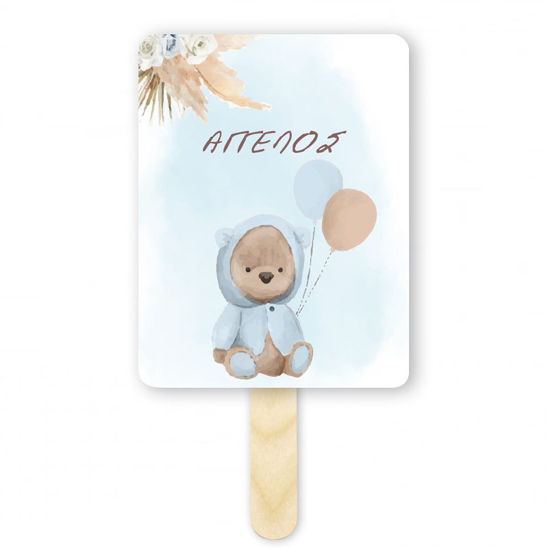 Εντυπωσιακή ορθογώνια χάρτινη βεντάλια με όνομα Αρκουδάκι για Αγόρι, ένα έξυπνο αναμνηστικό δωράκι για τους καλεσμένους σας.