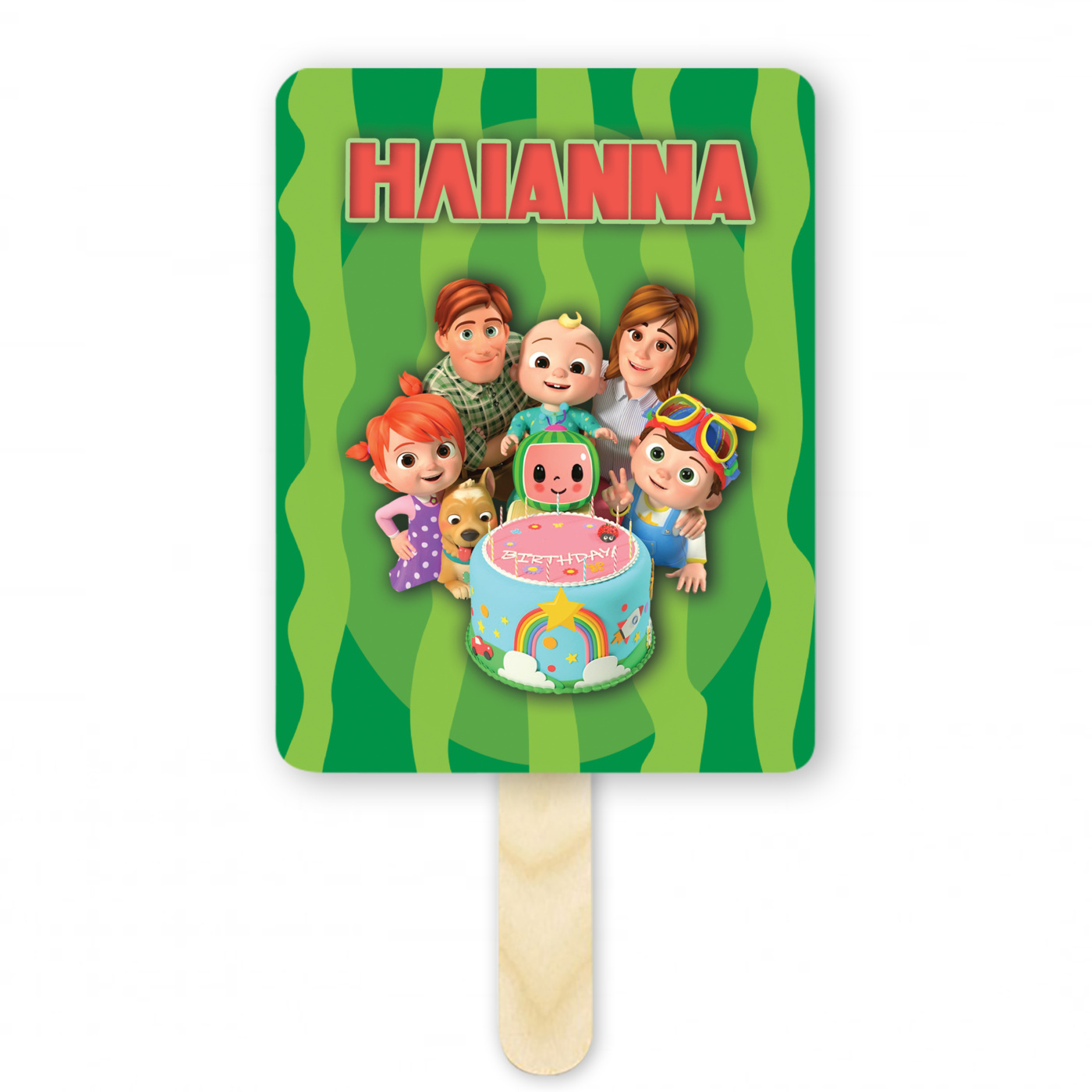 Εντυπωσιακή ορθογώνια χάρτινη βεντάλια με όνομα Cocomelon, ένα έξυπνο αναμνηστικό δωράκι για τους καλεσμένους σας.