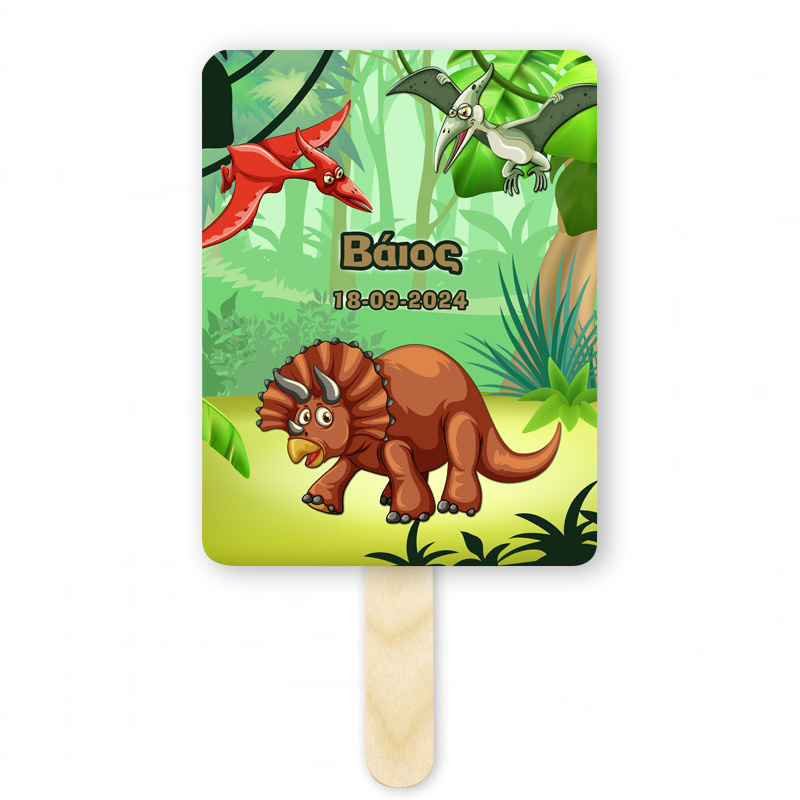 Εντυπωσιακή ορθογώνια χάρτινη βεντάλια με όνομα Δεινόσαυροι, ένα έξυπνο αναμνηστικό δωράκι για τους καλεσμένους σας.