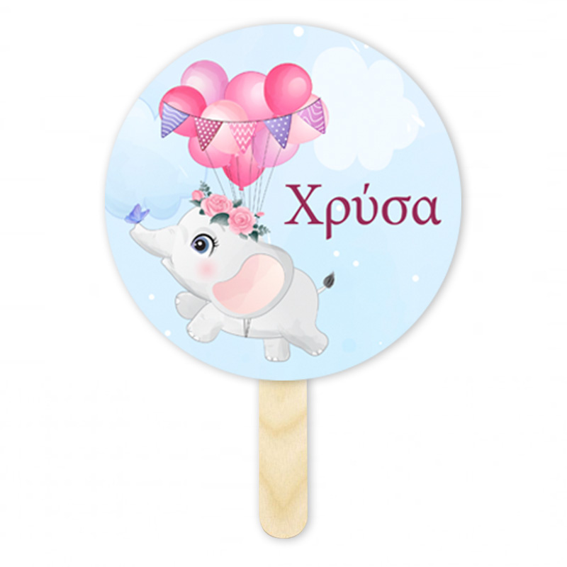 Εντυπωσιακή χάρτινη βεντάλια με όνομα Ελεφαντάκι για Κορίτσι, ένα έξυπνο αναμνηστικό δωράκι για τους καλεσμένους σας.