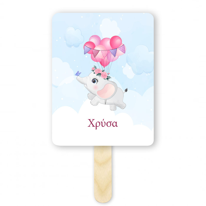 Εντυπωσιακή ορθογώνια χάρτινη βεντάλια με όνομα Ελεφαντάκι για Κορίτσι, ένα έξυπνο αναμνηστικό δωράκι για τους καλεσμένους σας.