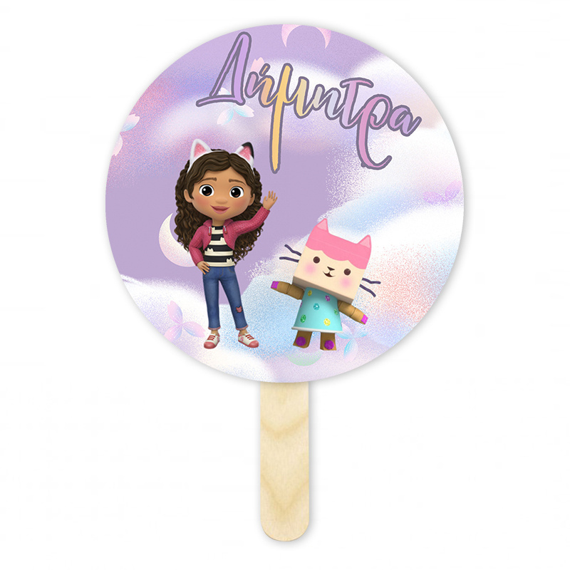Εντυπωσιακή χάρτινη βεντάλια με όνομα Gabby’s Dollhouse, ένα έξυπνο αναμνηστικό δωράκι για τους καλεσμένους σας.