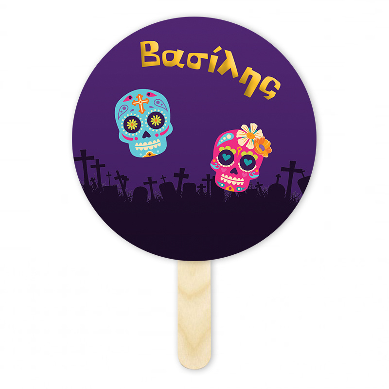Εντυπωσιακή χάρτινη βεντάλια με όνομα Halloween Νεκροκεφαλές, ένα έξυπνο αναμνηστικό δωράκι για τους καλεσμένους σας.
