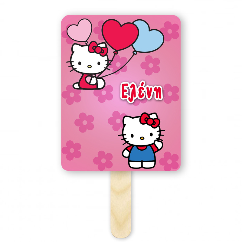Εντυπωσιακή ορθογώνια χάρτινη βεντάλια με όνομα Hello Kitty, ένα έξυπνο αναμνηστικό δωράκι για τους καλεσμένους σας.