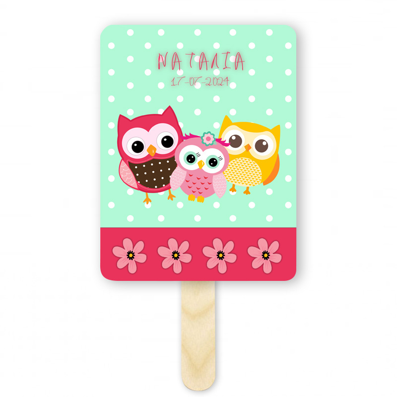 Εντυπωσιακή ορθογώνια χάρτινη βεντάλια με όνομα Κουκουβάγιες, ένα έξυπνο αναμνηστικό δωράκι για τους καλεσμένους σας.