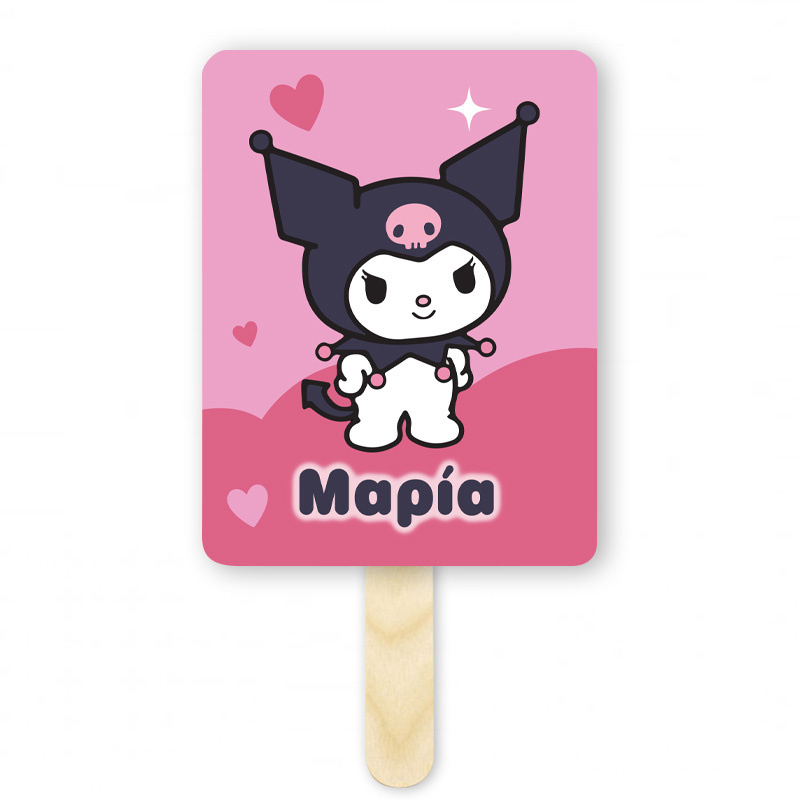Εντυπωσιακή ορθογώνια χάρτινη βεντάλια με όνομα Kuromi, ένα έξυπνο αναμνηστικό δωράκι για τους καλεσμένους σας.
