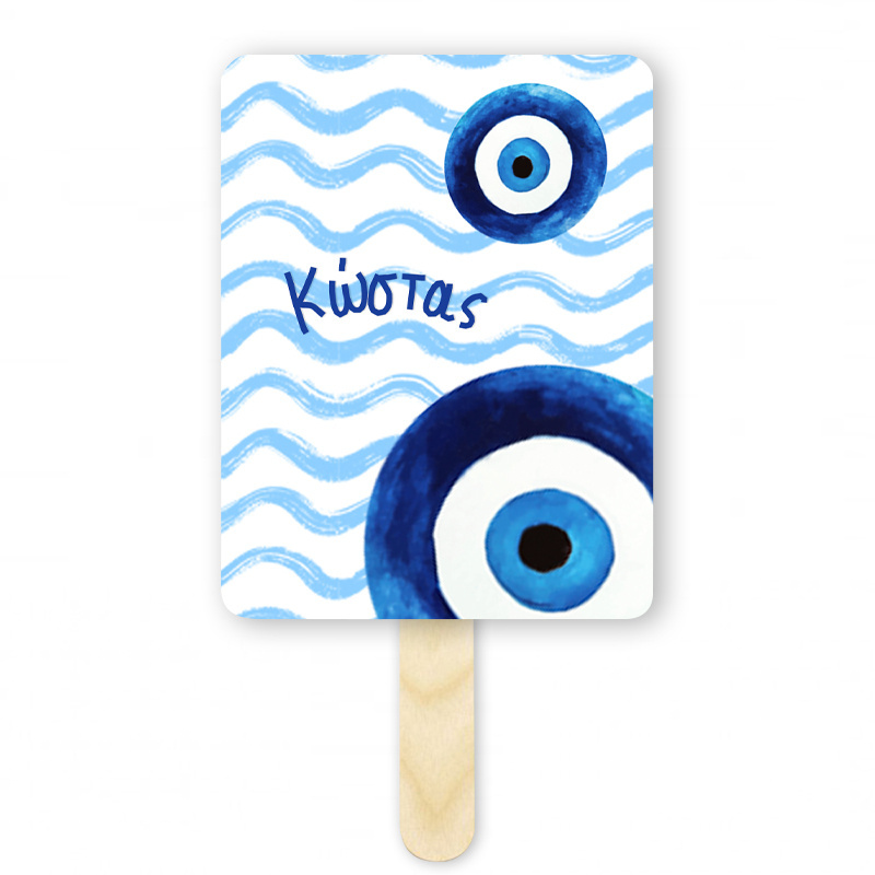 Εντυπωσιακή ορθογώνια χάρτινη βεντάλια με όνομα Μάτι Αγόρι, ένα έξυπνο αναμνηστικό δωράκι για τους καλεσμένους σας.