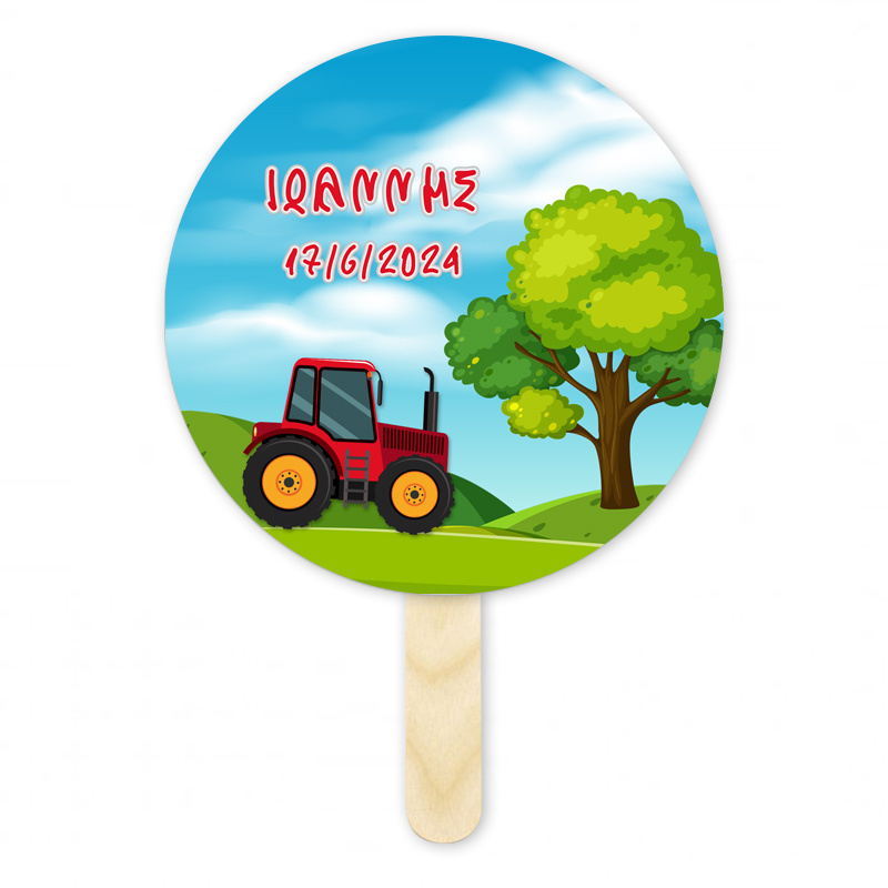 Εντυπωσιακή χάρτινη βεντάλια με όνομα Ο μικρός Τρακτεράκιας, ένα έξυπνο αναμνηστικό δωράκι για τους καλεσμένους σας.