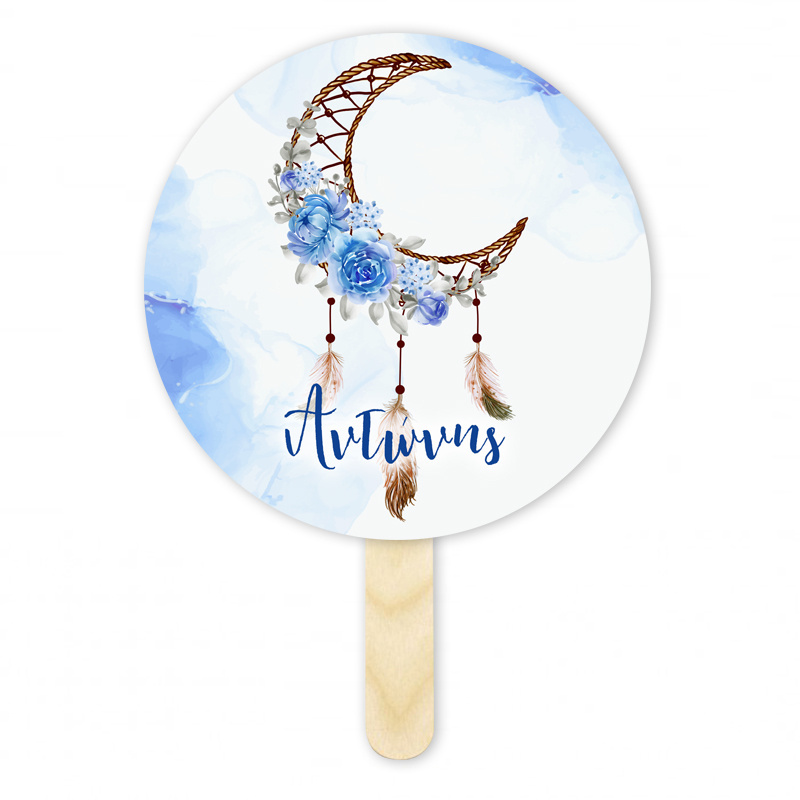 Εντυπωσιακή χάρτινη βεντάλια με όνομα Ονειροπαγίδα Αγόρι, ένα έξυπνο αναμνηστικό δωράκι για τους καλεσμένους σας.