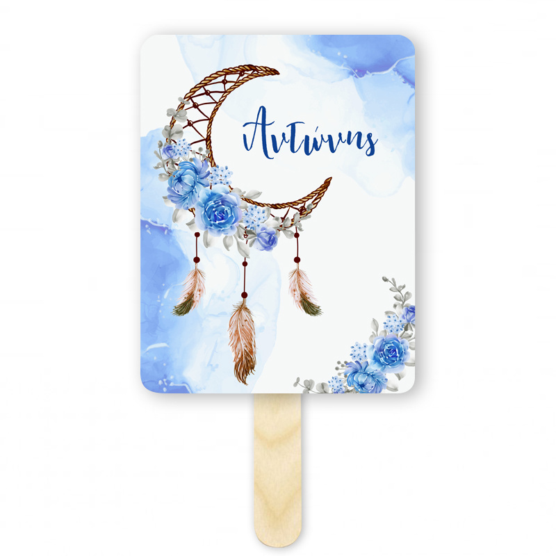 Εντυπωσιακή ορθογώνια χάρτινη βεντάλια με όνομα Ονειροπαγίδα Αγόρι, ένα έξυπνο αναμνηστικό δωράκι για τους καλεσμένους σας.