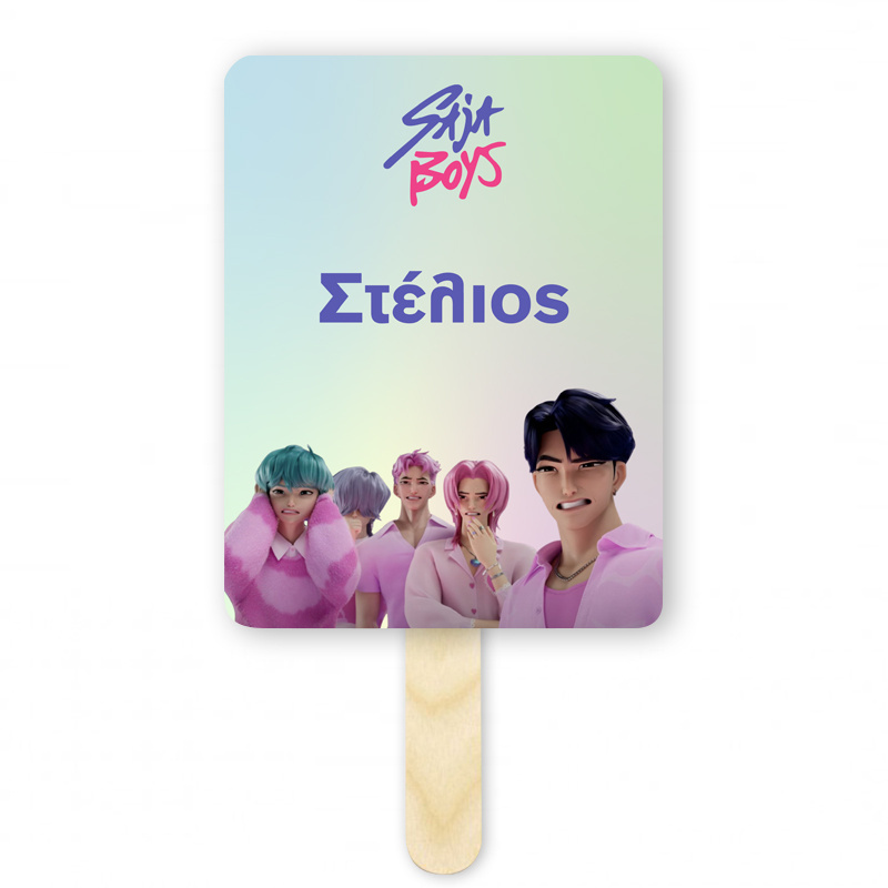 Εντυπωσιακή ορθογώνια χάρτινη βεντάλια με όνομα Saja Boys, ένα έξυπνο αναμνηστικό δωράκι για τους καλεσμένους σας.