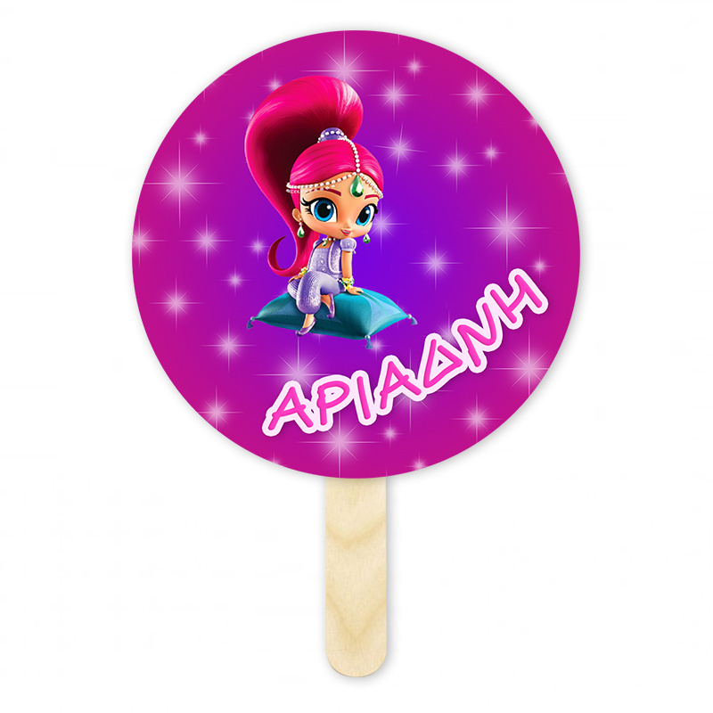 Εντυπωσιακή χάρτινη βεντάλια με όνομα Shimmer & Shine, ένα έξυπνο αναμνηστικό δωράκι για τους καλεσμένους σας.