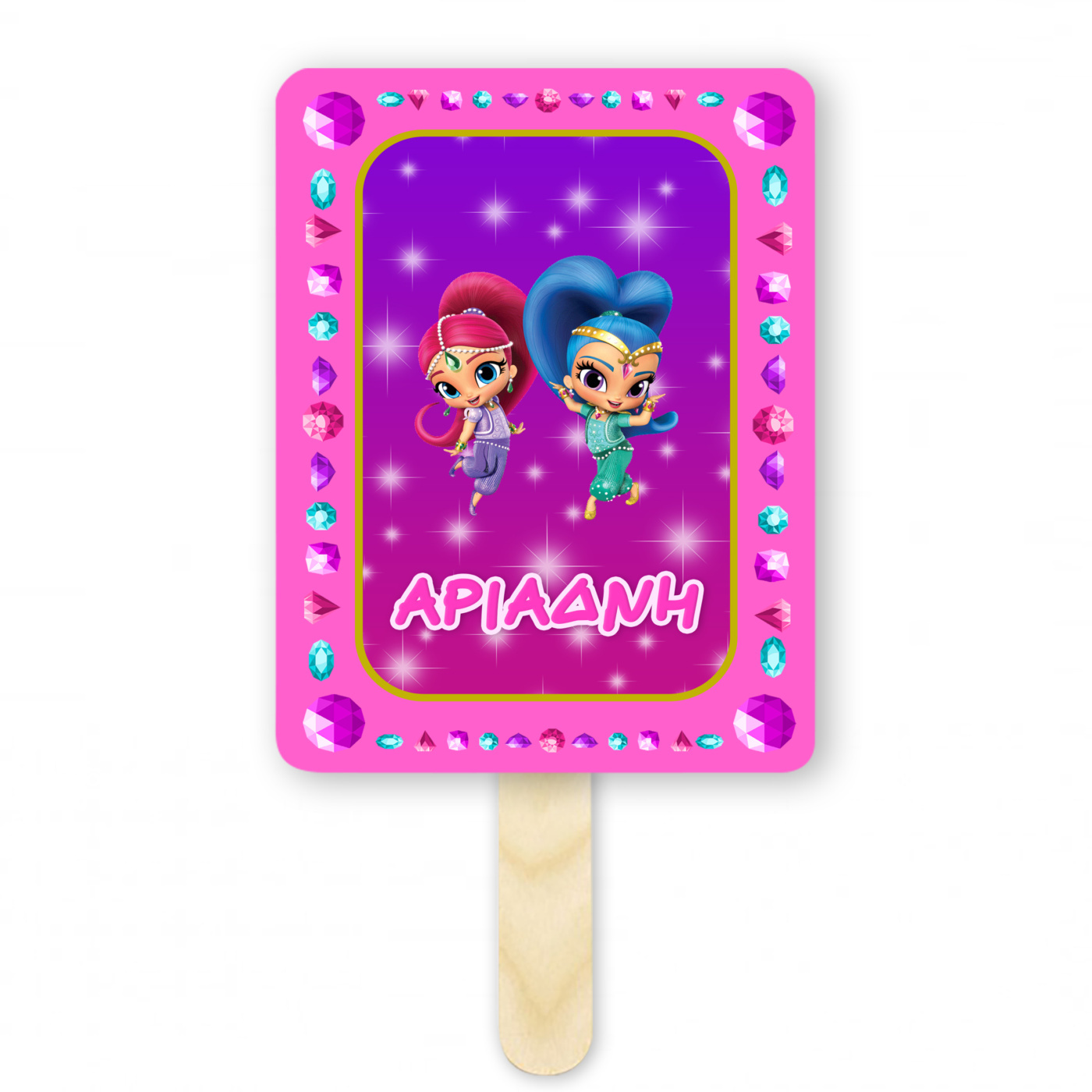 Εντυπωσιακή ορθογώνια χάρτινη βεντάλια με όνομα Shimmer & Shine, ένα έξυπνο αναμνηστικό δωράκι για τους καλεσμένους σας.