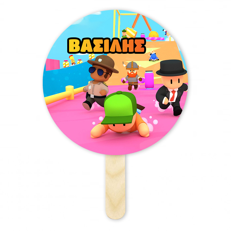 Εντυπωσιακή χάρτινη βεντάλια με όνομα Stumble Guys, ένα έξυπνο αναμνηστικό δωράκι για τους καλεσμένους σας.