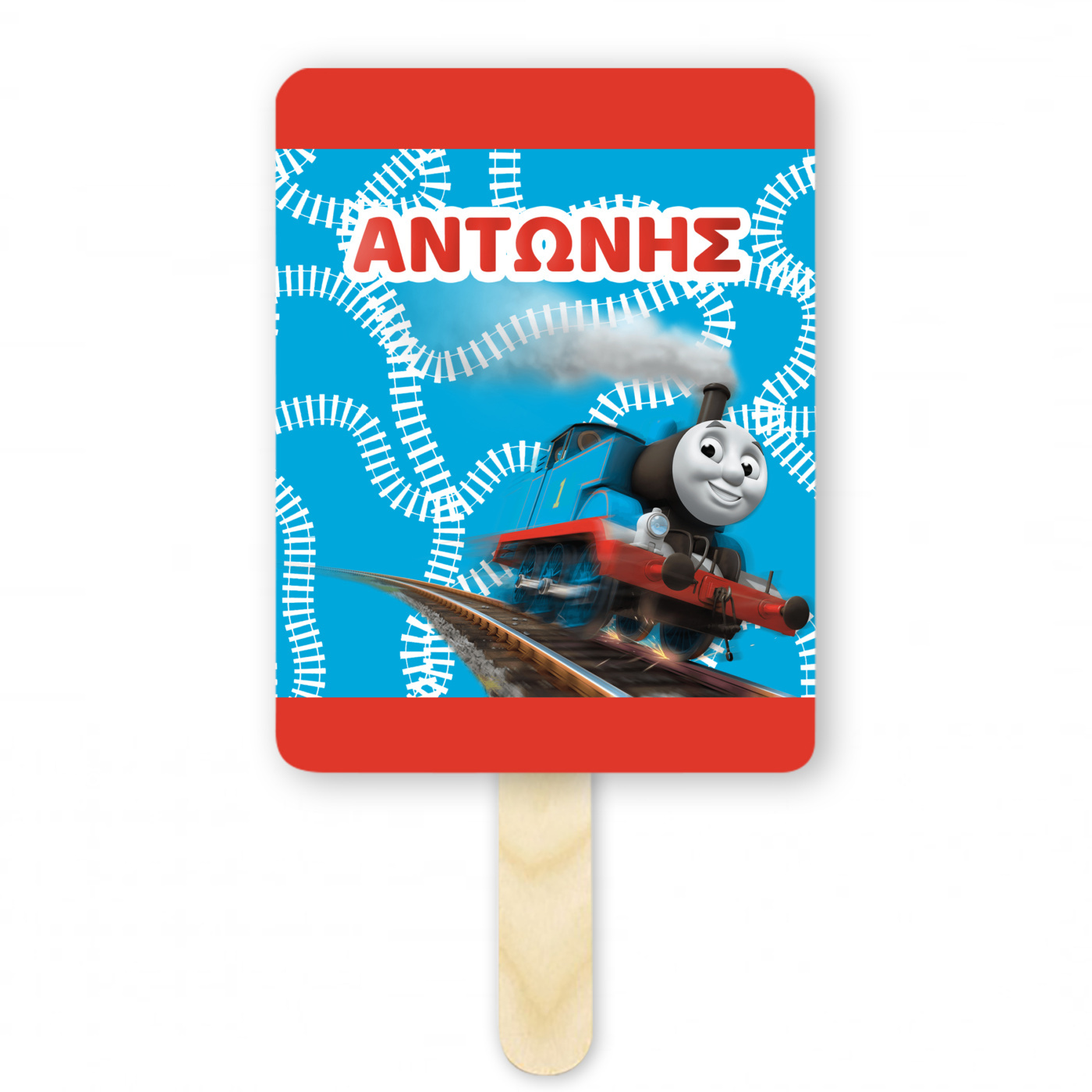 Εντυπωσιακή ορθογώνια χάρτινη βεντάλια με όνομα Τόμας το τρενάκι, ένα έξυπνο αναμνηστικό δωράκι για τους καλεσμένους σας.