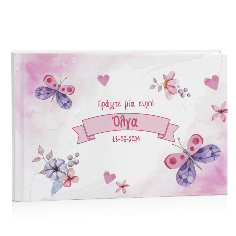 Bιβλίο ευχών με θέμα Πεταλούδα, είναι μια υπέροχη επιλογή για τη βάπτιση του μωρού σας.