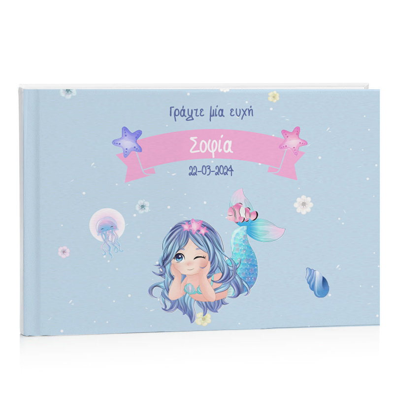 Bιβλίο ευχών με θέμα Γοργόνα, είναι μια υπέροχη επιλογή για τη βάπτιση του μωρού σας.