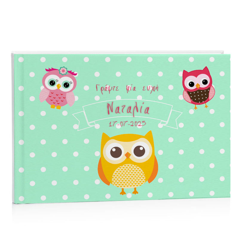 Bιβλίο ευχών με θέμα Κουκουβάγιες, είναι μια υπέροχη επιλογή για τη βάπτιση του μωρού σας.