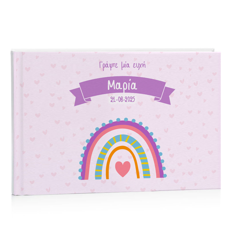 Bιβλίο ευχών με θέμα Retro Rainbow, είναι μια υπέροχη επιλογή για τη βάπτιση του μωρού σας.