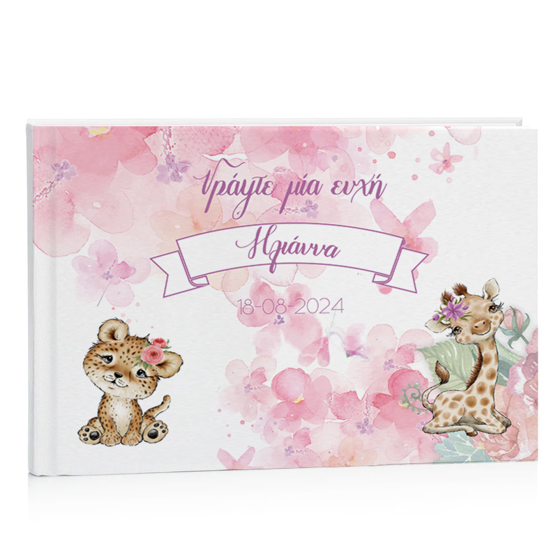 Bιβλίο ευχών με θέμα Ζωάκια ζούγκλας Κορίτσι, είναι μια υπέροχη επιλογή για τη βάπτιση του μωρού σας.