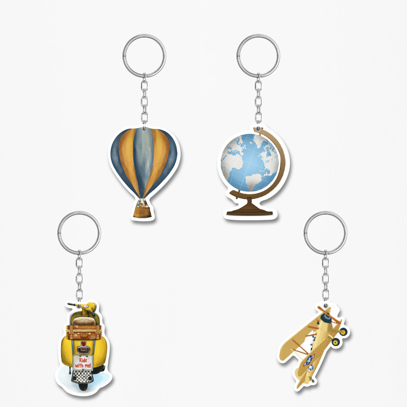 Τα ξύλινα μπρελόκ Ταξίδια, διαστάσεων 5cm και συσκευασίας 4 τεμαχίων, αποτελούν μια μοναδική επιλογή διακόσμησης. Ιδανικά για δωράκια πάρτυ ή στοιχεία σε μπομπονιέρα Βάπτισης.