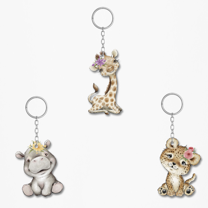 Τα ξύλινα μπρελόκ Ζωάκια ζούγκλας Κορίτσι, διαστάσεων 5cm και συσκευασίας 4 τεμαχίων, αποτελούν μια μοναδική επιλογή διακόσμησης. Ιδανικά για δωράκια πάρτυ ή στοιχεία σε μπομπονιέρα Βάπτισης.