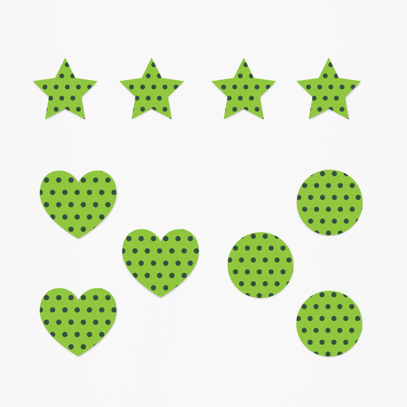 - Τεμάχια 10(4 αστέρια, 3 καρδίες, 3 κύκλοι)