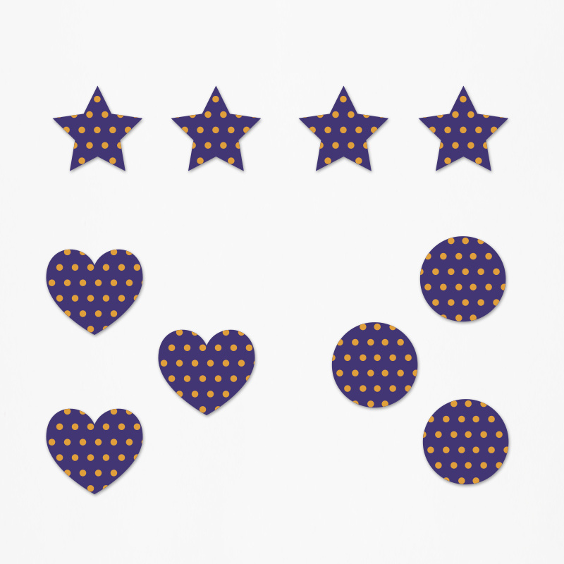 - Τεμάχια 10(4 αστέρια, 3 καρδίες, 3 κύκλοι)