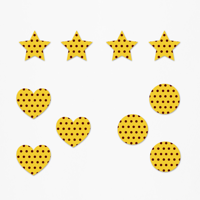 - Τεμάχια 10(4 αστέρια, 3 καρδίες, 3 κύκλοι)