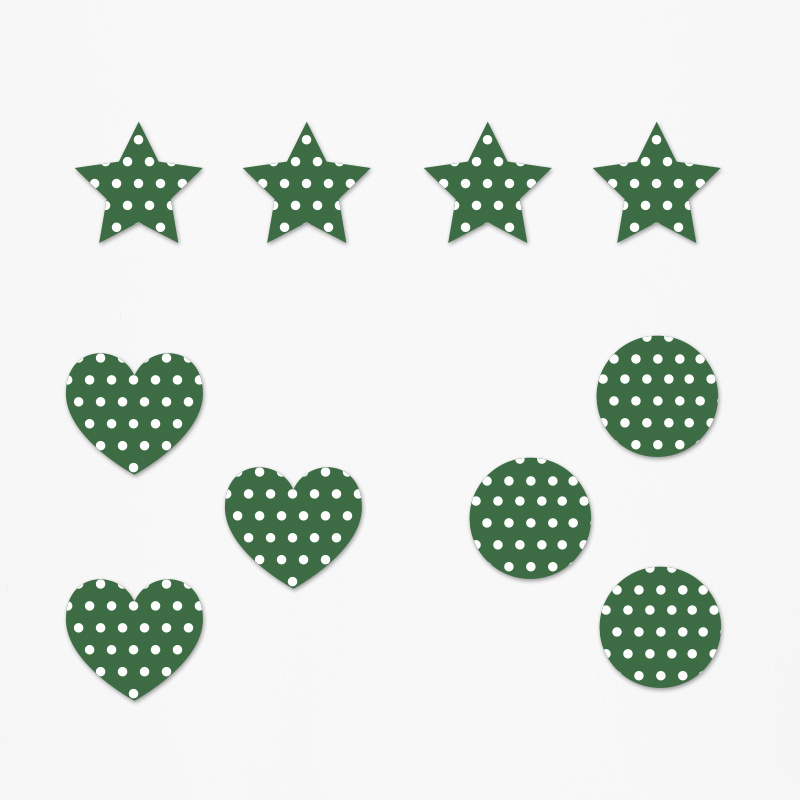 Διακοσμήστε με στιλ τον μπουφέ σας, με τα Ξύλινα διακοσμητικά Παναθηναϊκός Pattern mix. Υψηλής ποιότητας ξύλο 3mm σε διάσταση 2cm, συνολικά 10 τεμάχια με σχήματα αστεριών, καρδιών και κύκλων για ξεχωριστή διακόσμηση.